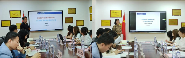 在专题汇报环节,杨晓池和张新新老师紧密结合国家政策、行业发展趋势以及前期调研成果,详细阐述了修订依据、原则、培养目标、毕业要求及课程体系等内容,为后续的讨论奠定了坚实基础。