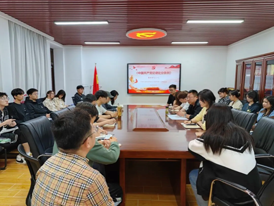 为深入学习《中国共产党纪律处分条例》,按照校、院两级党委的统一部署和要求,深刻领会《条例》实质,准确把握内涵要义和实践要求,落实全面学、反复学,筑牢政治忠诚,努力做自我革命的表率、遵规守纪的标杆。信息工程学院第一党支部于4月13日下午在党员活动室召开《中国共产党纪律处分条例》专题学习会议,会议由支部书记崔璐主持,全体党员参加。
