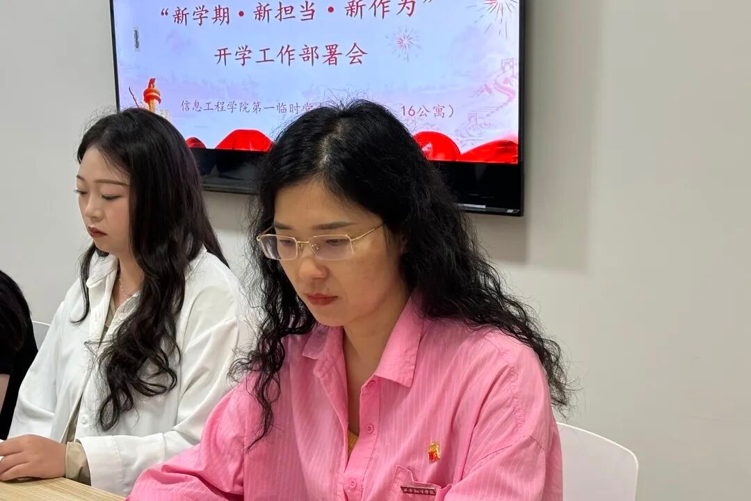 为全面部署新学期工作,明确目标任务,凝聚支部党员力量,推动“一站式”学生社区建设与党支部工作深度协同。9月3日,信息工程学院第一临时党支部开展“新学期·新担当·新作为”开学工作部署会。会议由支部书记沈平利同志主持,东十五、东十六公寓全体支部党员参加。