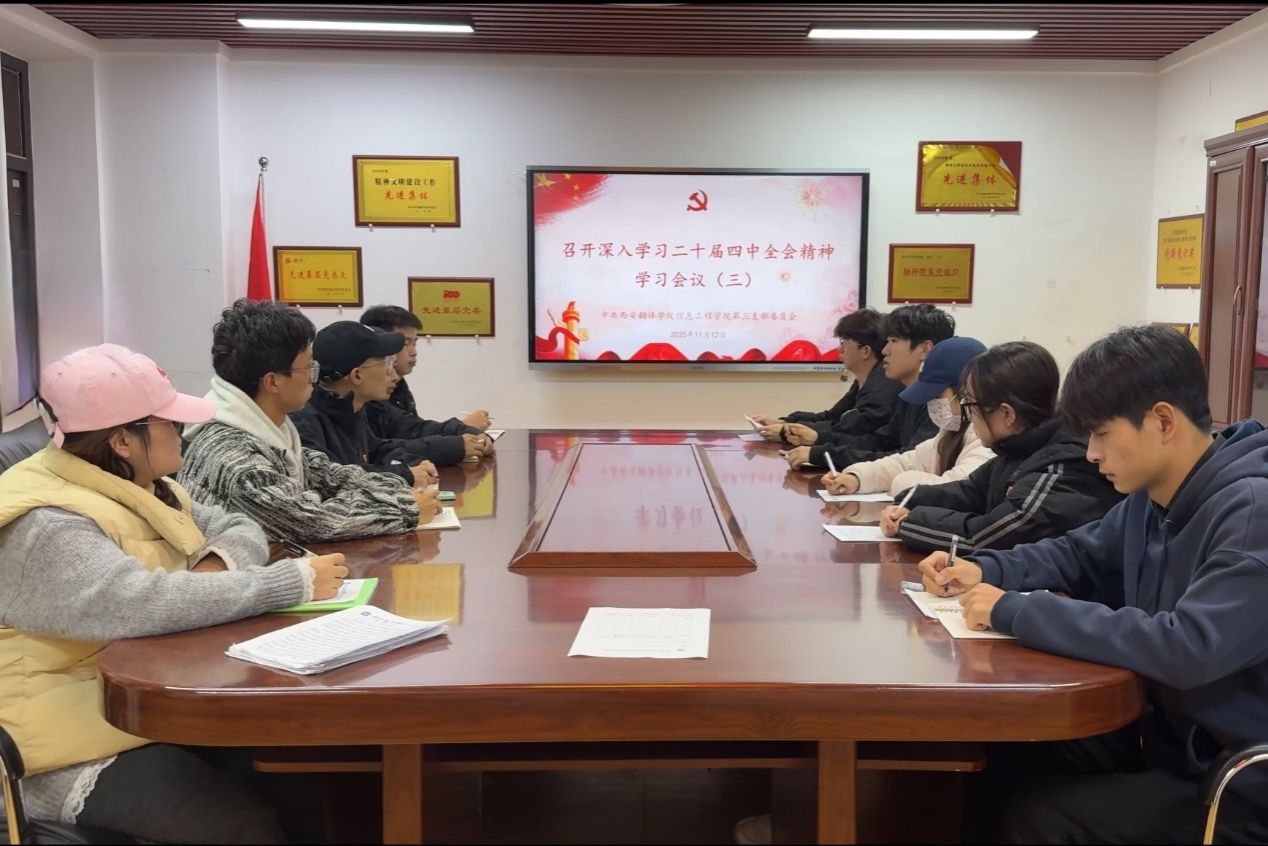 为深入学习贯彻党的二十届四中全会精神,切实引导学生党员深刻体悟全会精神的核心要义。2025年11月12日,信息工程学院第三党支部在党员活动室召开深入学习贯彻党的二十届四中全会精神学习会议。会议由支部组织委员徐鹤毓同志主持,支部全体党员参会。