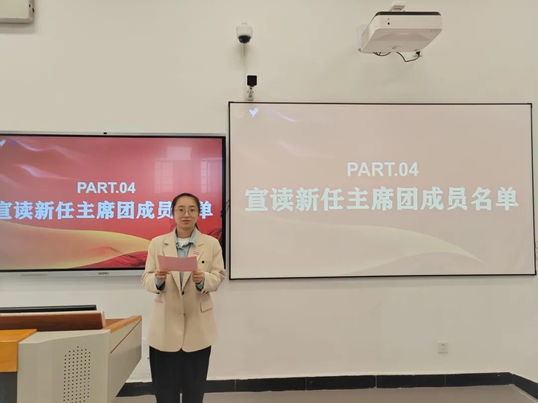 由陈雨婷老师宣读新任主席团成员名单,王荣平老师为新任主席团成员颁发聘书。