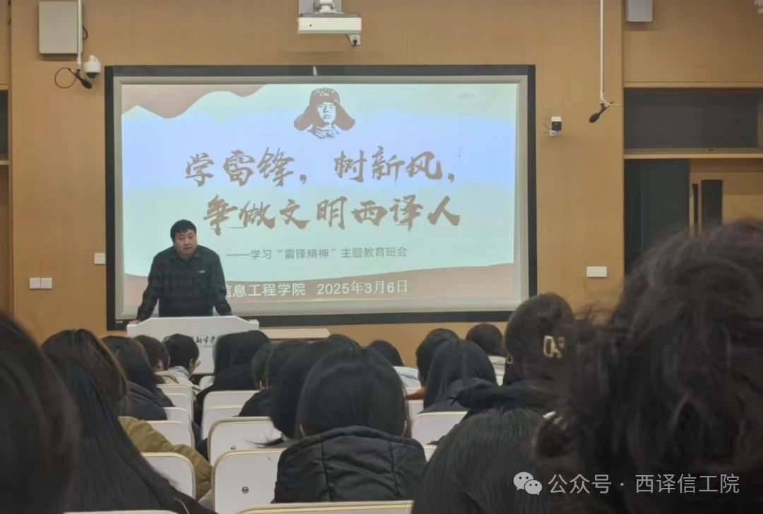 为弘扬雷锋精神,培育和践行社会主义核心价值观,营造文明和谐的校园氛围,信息工程学院各班召开了“学雷锋,树新风,争做文明西译人”主题班会。旨在通过学习雷锋事迹,引导同学们领会雷锋精神中蕴含的崇高理想信念、奉献精神、敬业精神。此次班会鼓励大家将雷锋精神融入日常生活,用实际行动传递爱心与温暖,努力成为有理想、敢担当、能吃苦、肯奋斗的新时代好青年,为构建文明和谐的校园贡献自己的力量,让雷锋精神在校园中绽放新的光彩。