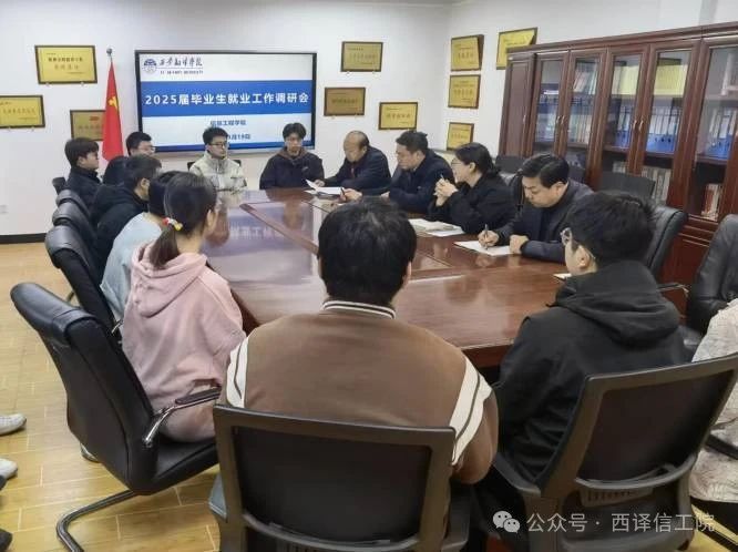 为全面落实高校毕业生就业工作决策部署,扎实推进2025届毕业生高质量充分就业,3月19日上午,大学生就业创业指导中心来院就2025届毕业生就业工作进行调研。校大学生就业创业指导服务中心处长高晶晶、联络员赵虎彪,信息工程学院党委书记、副院长赵桢宇,2025届毕业班辅导员崔璐、李瑶瑶及2025届10余名当前未就业学生参会。会议由王晓东主任主持。