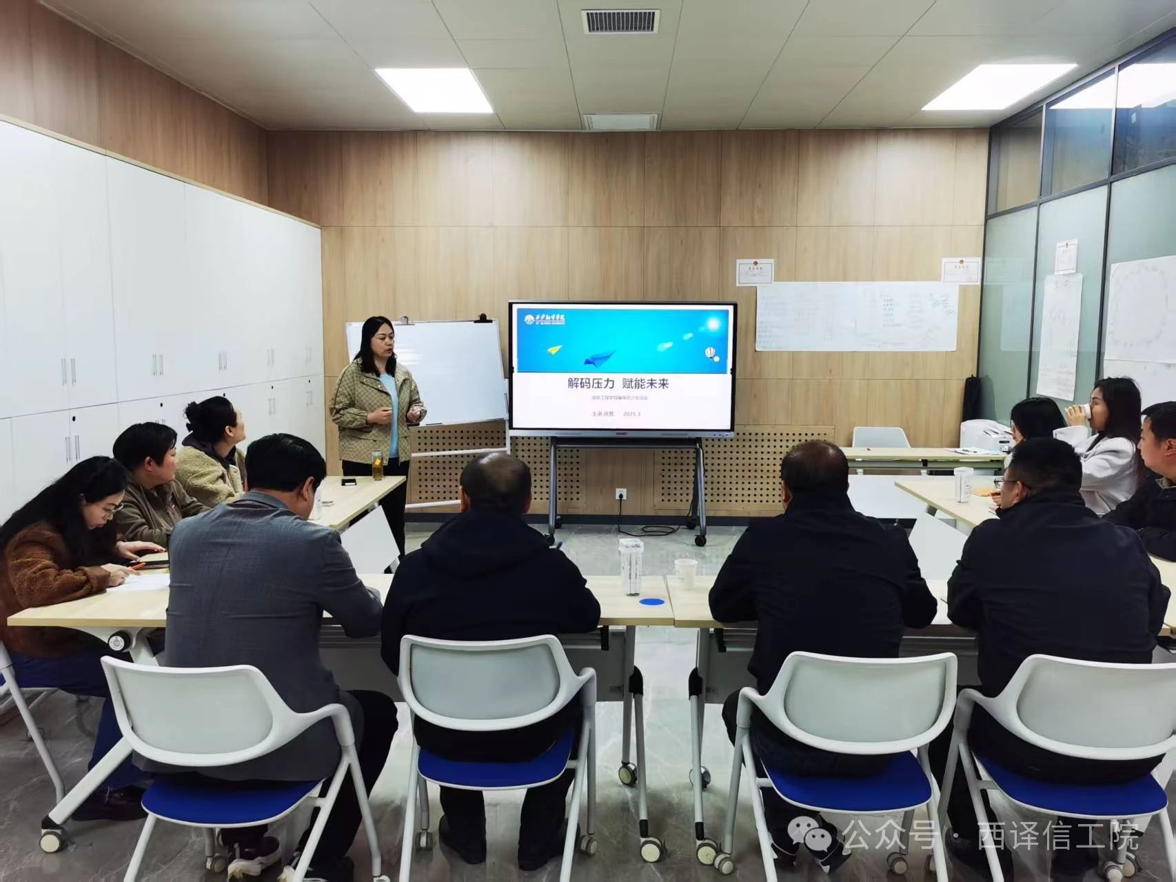为扎实推进辅导员队伍建设,提升团队协作力与凝聚力,3月27日下午,信息工程学院联合我校译路生花生涯工作室开展了“解码压力,赋能未来”主题团辅活动。大学生就业创业指导服务中心讲师、工作室负责人张芳主讲,信息工程学院10余名辅导员及学院就业联络负责人赵虎彪参加了本次活动。