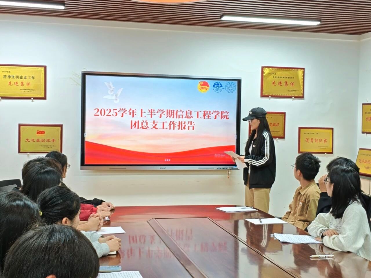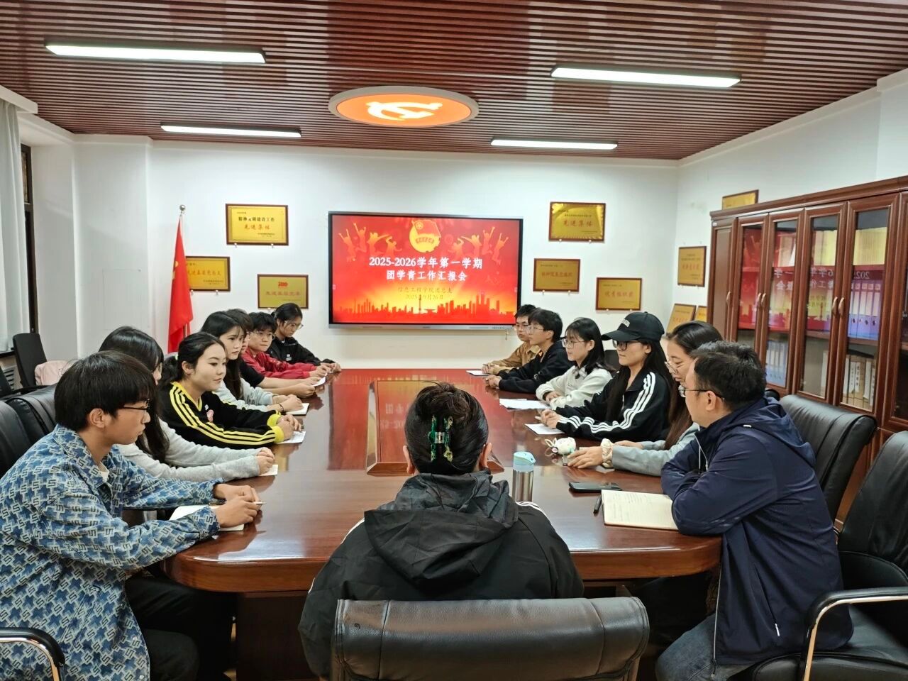 为了系统总结团学青工作成效、梳理工作重点,进一步明确干部职责分工、夯实工作对接基础,同时着力打造政治坚定、作风优良、能力过硬的学生干部队伍。信息工程学院于9月26日在党员活动室召开2025-2026学年一学期团学青工作汇报会。信息工程学院党委书记、院长王珍,团总支副书记陈雨婷,及团学青三家负责人参会。会议由团总支书记王荣平主持。