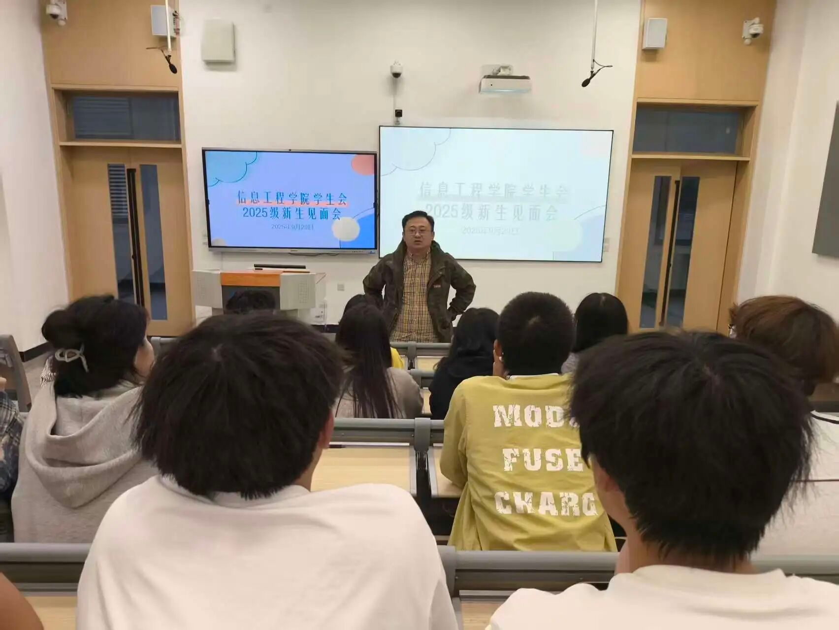 为强化信息工程学院学生组织的凝聚力,帮助2025级新加入学生会的成员建立集体认同感,明确个人在团队中的定位与价值,筑牢工作有序推进与创新发展的基础。信息工程学院学生会于9月29日下午,在723T 教室召开新成员见面会。信息工程学院团总支书记王荣平出席了此次会议。