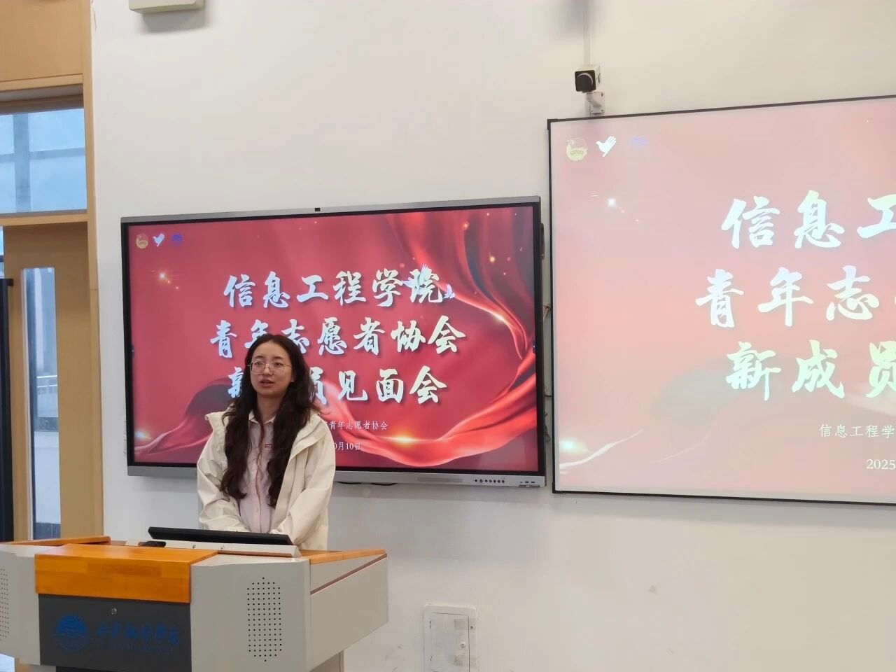 为使新成员了解组织架构与部门职能,更快更好融入集体,信息工程学院青年志愿者协会于10月11日在721T教室召开新成员见面会,会议由院青协执行主席马宇婷主持,学院团总支副书记陈雨婷出席,2025级60余名新成员参会。