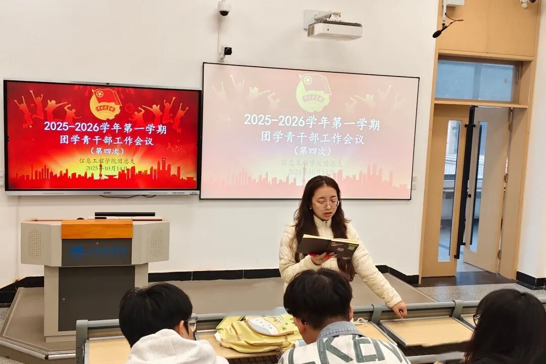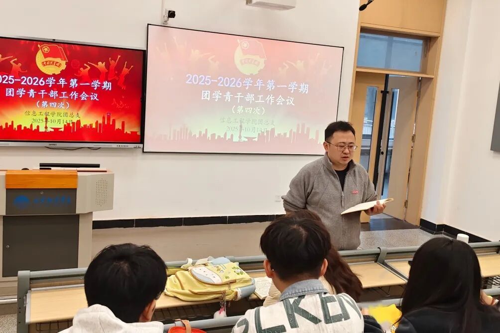 为强化信息工程学院团学青组织建设,提升工作效能,合理规划后续工作,信息工程学院于2025年10月14日在723T教室召开2025-2026学年第一学期第四次团学青干部工作会议。团总支书记王荣平、副书记陈雨婷、团学青主席团成员及下设各部门负责人参加此次会议。