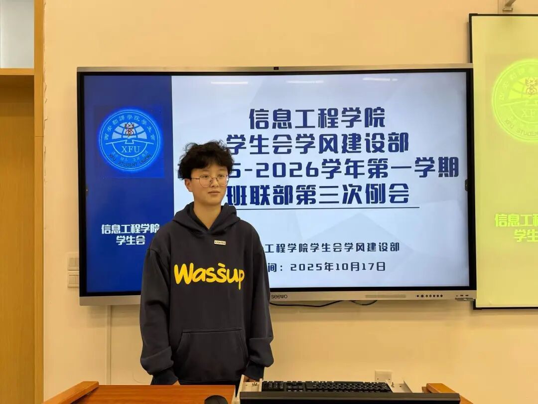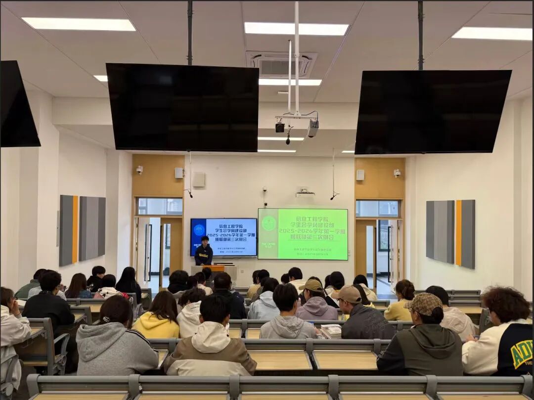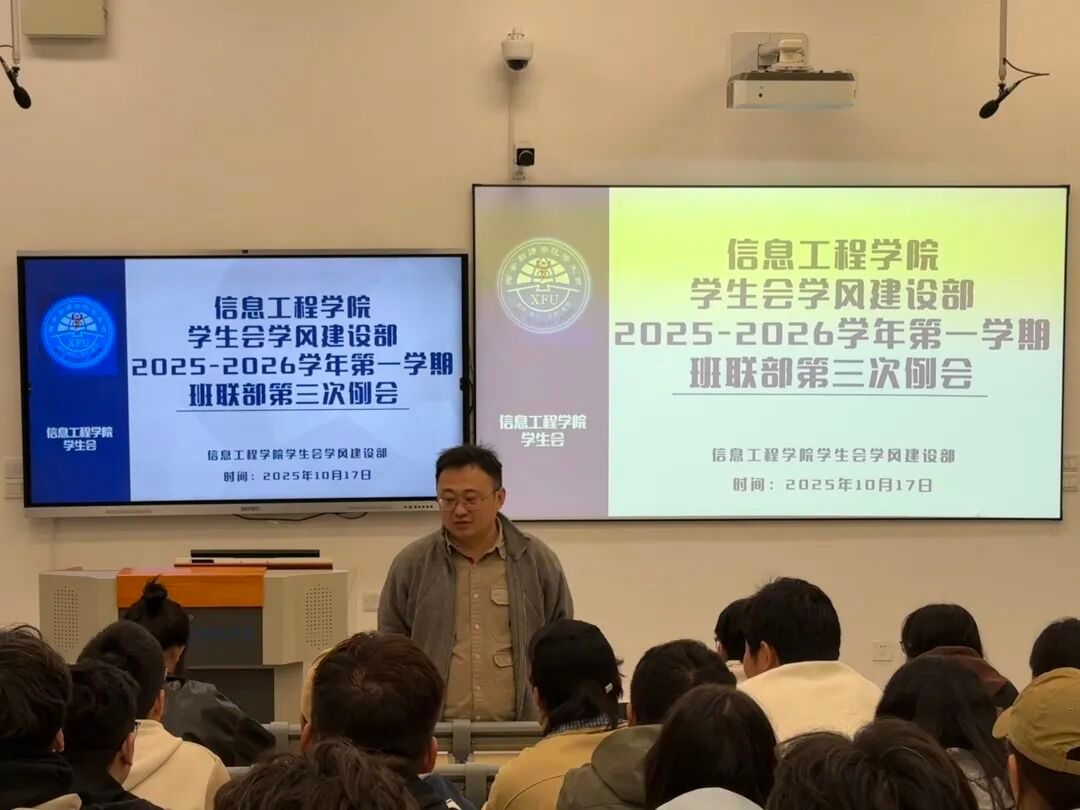 此次例会的成功召开,不仅是对过往工作的复盘,更是对未来征程的展望,未来,信息工程学院学风建设部将继续秉持“服务同学、助力成长”的宗旨,与全体班委一道,以更加饱满的热情和更加务实的作风,为营造严谨、勤奋、求实、创新的优良学风而不懈奋斗!