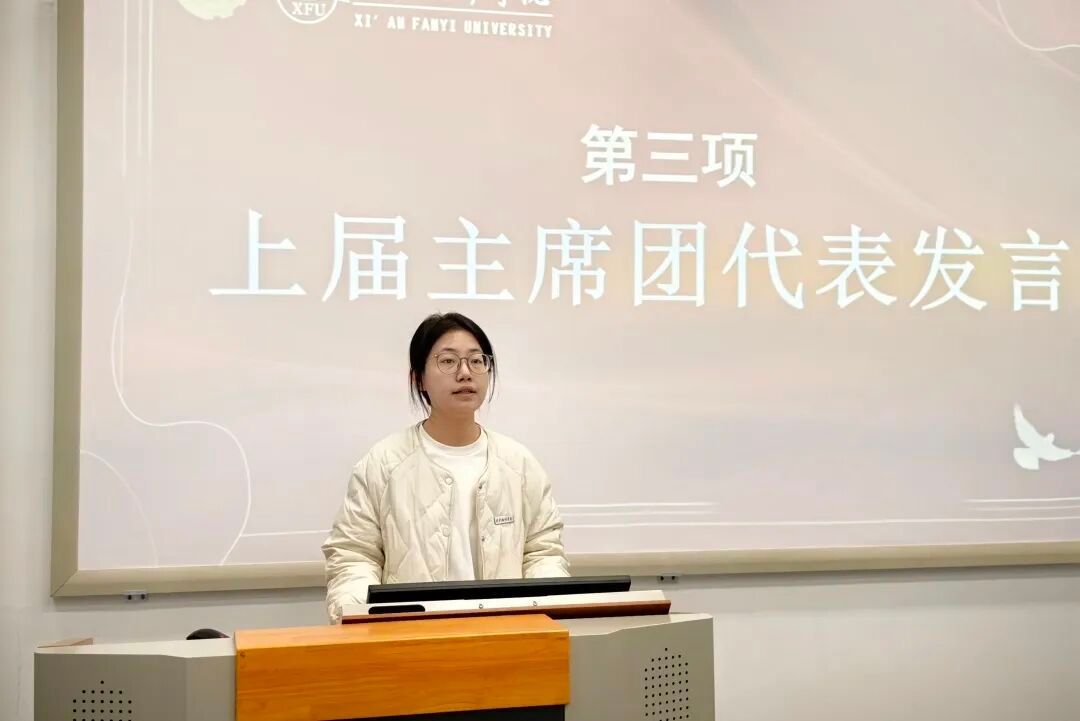 上届主席团代表贾婷提到,过去一年里,学生会围绕学院发展需求,以多元的实践形式有效增强了学生的专业认知与社会责任感。同时,她向新一届成员寄语,希望大家保持工作热忱与责任担当,强化团队协作,坚守服务同学、助力学院发展的初心,推动学生会工作持续走深走实。
