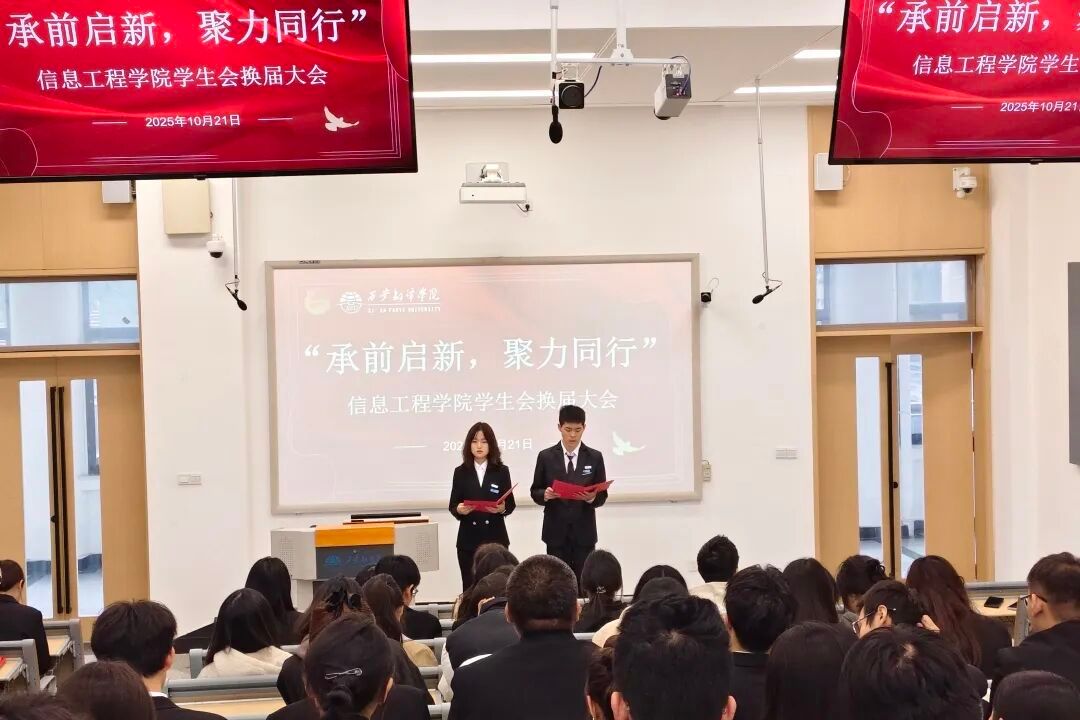 以奋斗为笔,绘青春华章。信息工程学院2025年学生会换届大会圆满结束,展望未来,学院学生会将以新成员加入为契机,秉持实干担当精神,不断提升工作效能与服务质量,凝聚团队合力推动各项工作再上新台阶,为学院建设发展贡献更多青春力量。