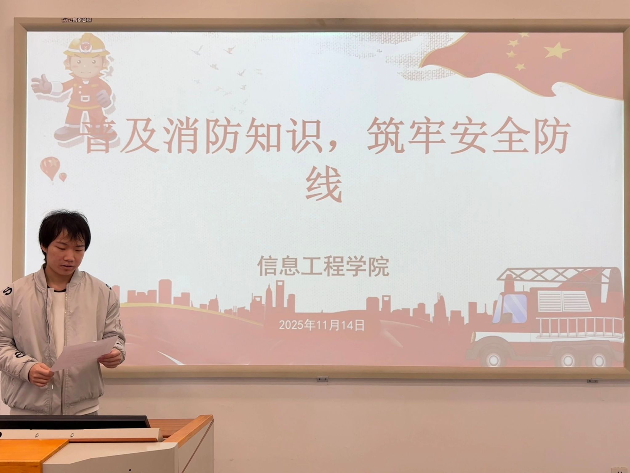 为了筑牢校园消防安全防线,强化同学们的安全防范意识与应急处置能力,信息工程学院学生会于11月16日在722T召开了消防安全专题学习会议。本次会议由信息工程学院学生会学风建设部部长梁佳浩主持。