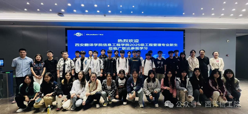 2025 年9月12日上午,西安翻译学院信息工程学院工程管理、工程造价专业2025级的新生们迎来了一场别开生面的入学教育活动,他们走进了广联达数字科技(西安)有限公司,深入了解数智建筑领域的前沿动态与行业发展趋势。