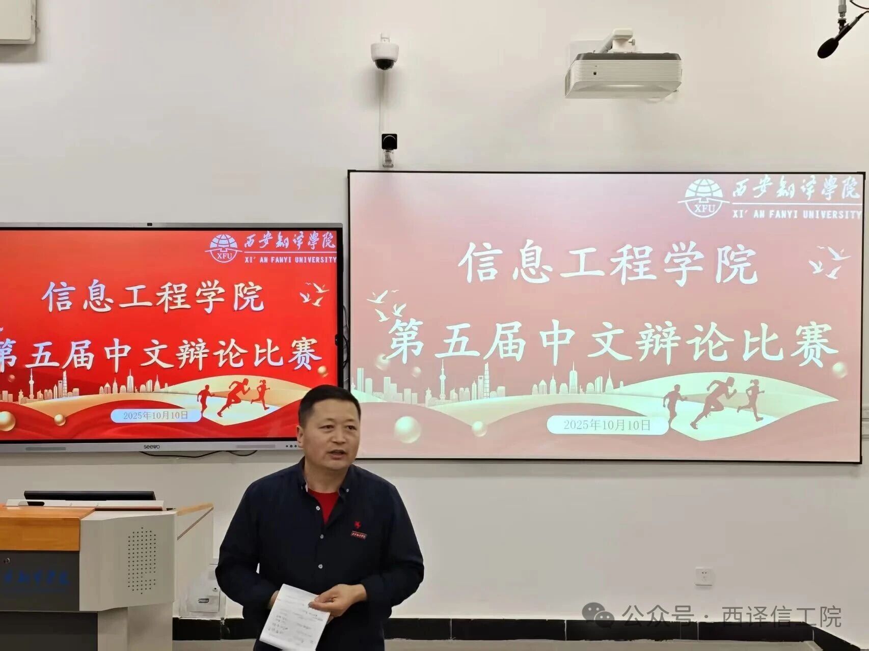 为进一步丰富校园文化生活,提升学生思辨能力与语言表达素养,并深化对专业发展与时代议题的思考,信息工程学院于10月10日在722T、723T顺利举行第五届中文演讲比赛与辩论赛,赛事由信息工程学院主办,院学生会协办,40余名选手参与。出席本次比赛的评委有电子信息系梁瑞、工程管理系杨露、计算机科学系杨勇、数理教研中心王丹、第三党支部书记沈平利、辅导员薛蓉。