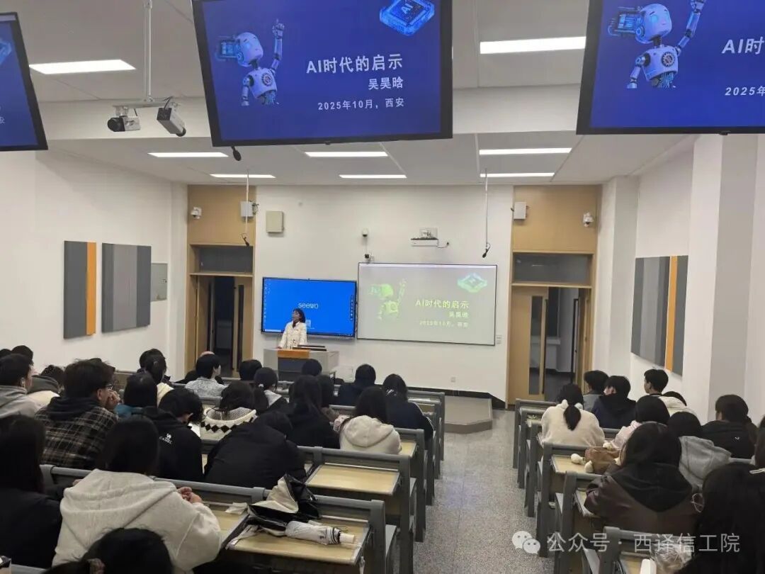 为助力学生洞悉AI时代前沿趋势,掌握创新方法与生存策略,以全球视野和前瞻思维,从容应对AI浪潮带来的机遇与挑战。2025年10月22日晚,信息工程学院邀请电子商务行业导师吴昊晗博士面向2023级电子商务专业学生召开了以“AI时代的启示”为主题的前沿讲座。