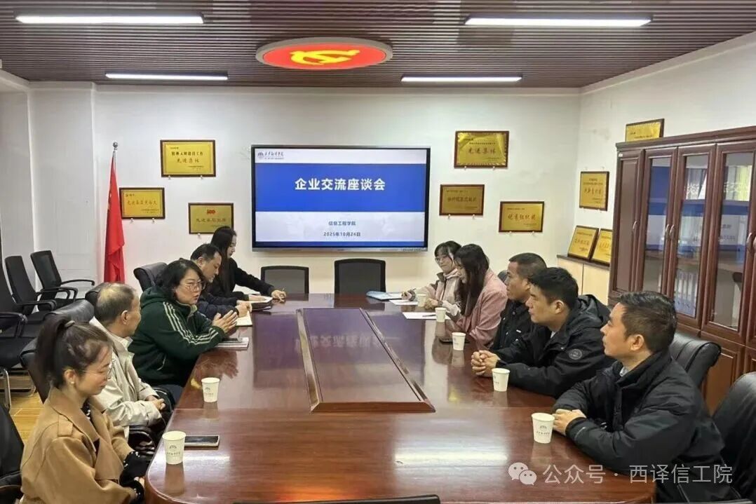 为深化校企协同育人机制、精准对接行业用人需求、助力学生实现高质量就业,信息工程学院于10月24日组织召开企业交流座谈会。信息工程学院行政副院长王珍、综合办副主任王晓东、就业联络员李瑶瑶,相关企业代表,及西安翻译学院大学生就业创业指导服务中心就业服务科科长梅洁参会。