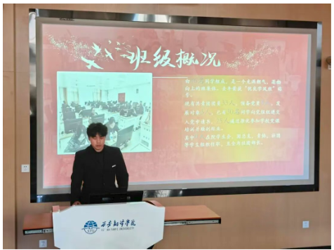 答辩现场,各参评班级代表依次上台,围绕思想建设、学风建设、文体活动、志愿服务及班级特色工作展开汇报,内容详实、重点突出,以清晰逻辑和丰富案例展现优良班风学风与凝聚力,彰显学院学子积极向上的精神风貌。评委老师从多维度提问点评,肯定成绩、指出不足并提出建议,整场答辩秩序井然、氛围热烈,充分展现了参评班级的良好风采与扎实建设功底。