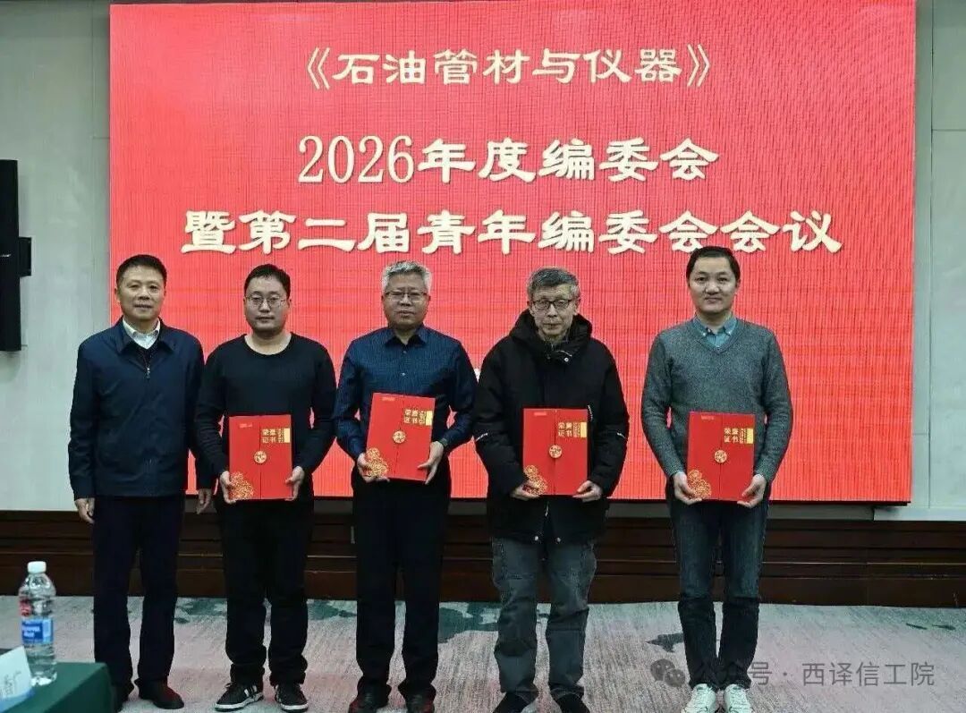 近日,《石油管材与仪器》2026年度编委会暨第二届青年编委会会议在西安成功召开,来自中国石油集团工程材料研究院、西安石油大学、西安翻译学院、中国石油长庆油田分公司、西安理工大学、国家集团北京管道公司、西南石油大学、西安交通大学和中国石油大学等单位的近50名编委、青年编委及期刊评优获奖者代表参加了会议。我校理工学部终南学者、二级教授法林受邀参会,被该期刊评为优秀编委,并为期刊高质量发展及行业技术进步建言献策。