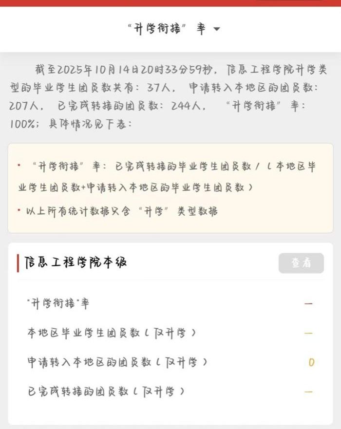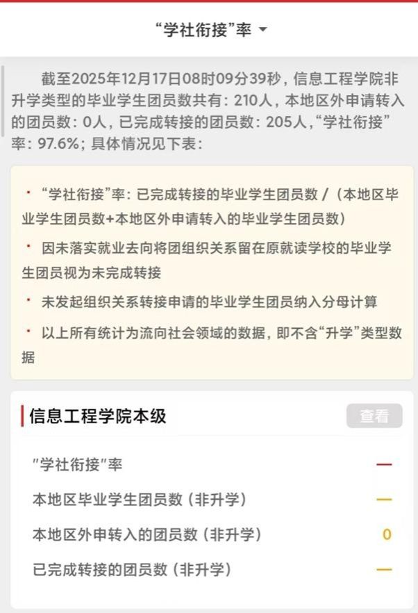 第二,为了将团员信息准确、完整录入“智慧团建”等管理系统,建立高校团员信息数据库,实现团员管理的数字化和精细化。帮助学院高效统计团员人数、结构等数据,为团组织制定工作计划提供数据支撑。以便于对团员信息进行动态更新,实现团员全周期信息化管理提升团务工作效率,减少人工统计误差,同时为上级团组织掌握高校团员队伍情况、统筹工作部署提供数据支持,推动团的工作规范化发展。让团员的个人团内信息可追溯、可查询,确保团员身份信息的准确性,为后续组织关系转出、政审等提供可靠依据。