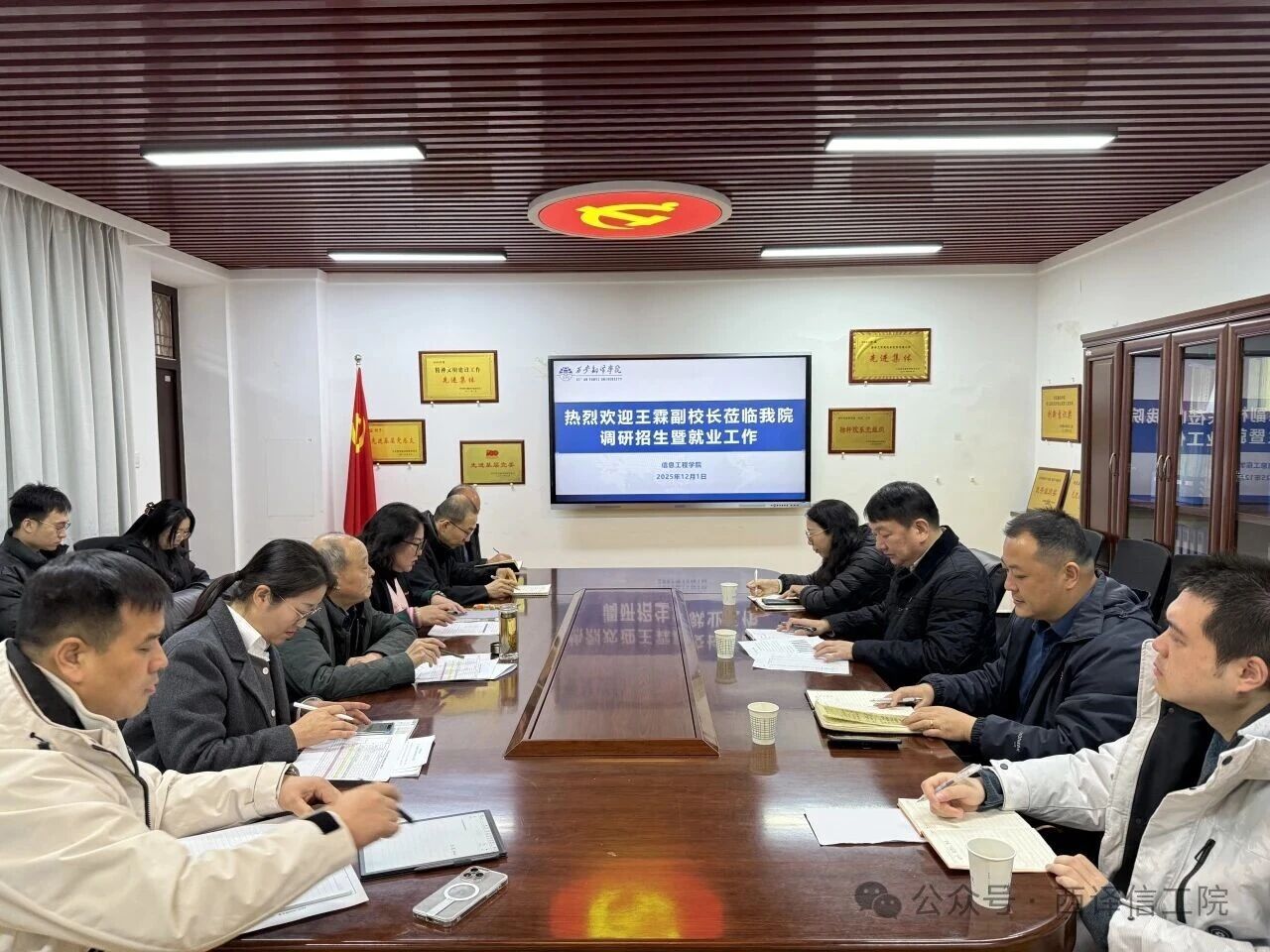 王霖副校长的此次专项指导,为信息工程学院招生就业工作提供了精准指引与有力支撑。学院将以此次指导为重要契机,紧密围绕新高考改革趋势与行业发展需求,在专业特色塑造、宣传渠道拓展、校企资源深度对接等关键领域精准发力,持续优化招生工作策略、提升就业服务质量,稳步构建“招生-培养-就业”一体化闭环体系,切实破解发展瓶颈,全力推动学院高质量发展迈向新台阶。