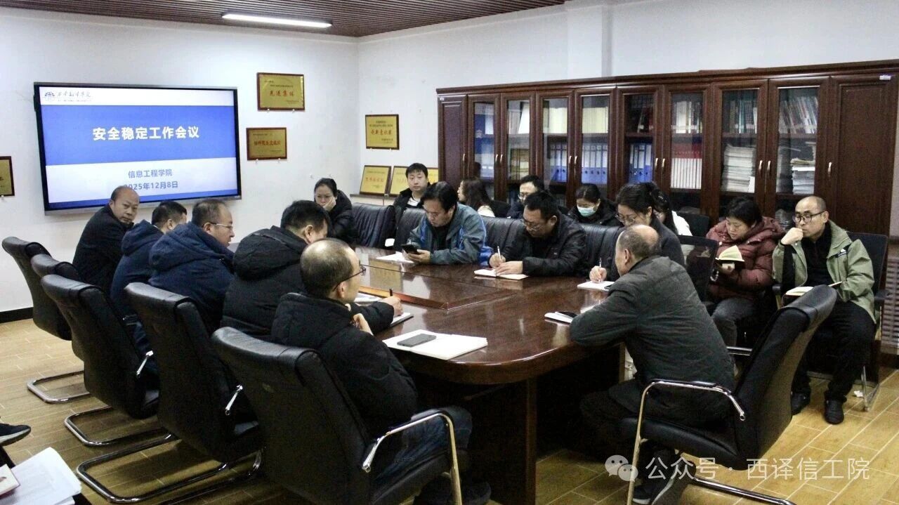 为贯彻全省教育系统安全稳定工作调度会的部署要求,信息工程学院于12月8日在党员会议室召开安全稳定工作专题会议,信息工程学院全体领导班子及各系主任、辅导员参会。会议围绕校园安全、教学管理、学生管理相关工作展开研讨,既及时响应了上级工作要求,更通过集中部署明确了工作方向,为期末阶段的安全保障与教学有序推进奠定了坚实的基础。