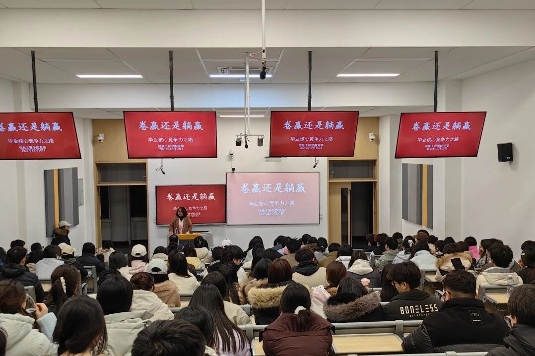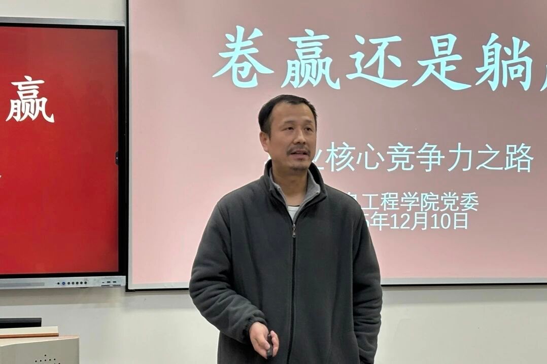 为深入贯彻落实就业育人工作要求,切实帮助我院学子明晰就业方向、化解求职迷茫,全面提升就业核心竞争力与职业规划能力。2025年12月10日,信息工程学院党委在721T教室组织开展“卷赢还是躺赢——增强就业核心竞争力”主题讲座,活动由信息工程学院党委书记王珍同志主持,特邀丁燃讲师主讲。