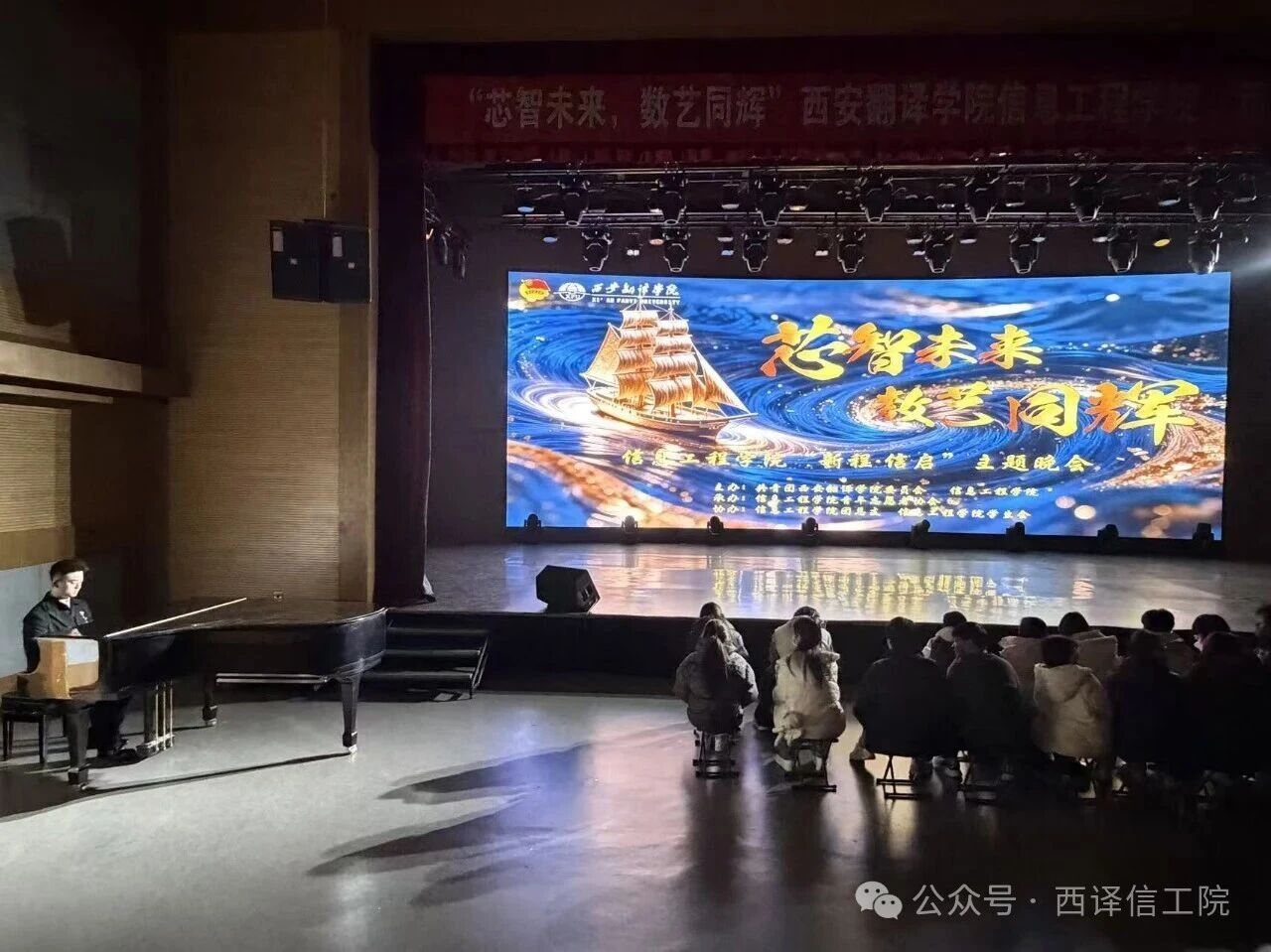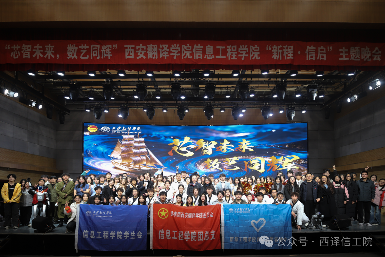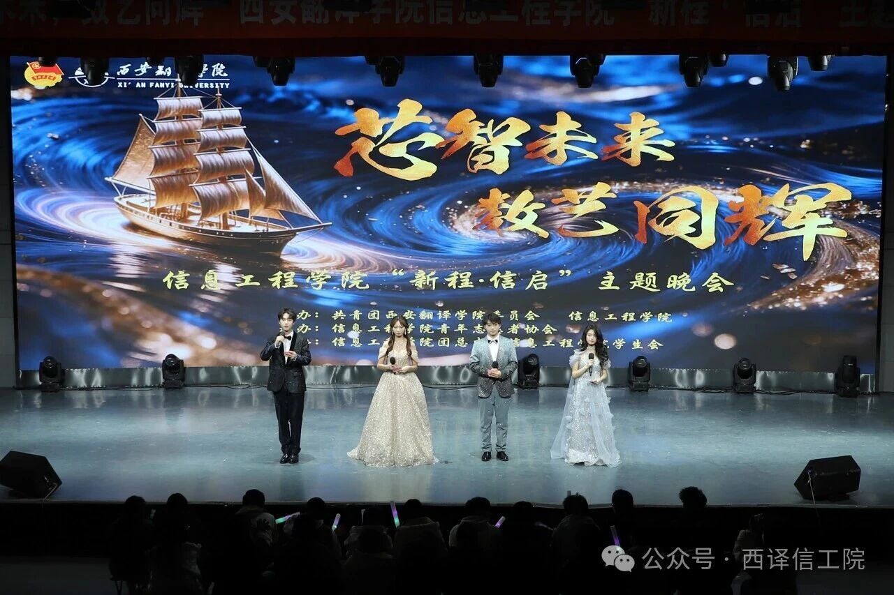12月15日晚,由共青团西安翻译学院委员会、信息工程学院青年志愿者协会主办,信息工程学院团总支、信息工程学院学生会协办的2025年“芯智未来,数艺同辉”信息工程学院“新程·信启”主题晚会在东区演播大厅隆重举行。
