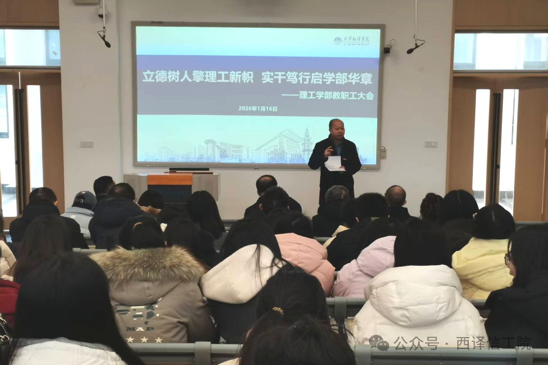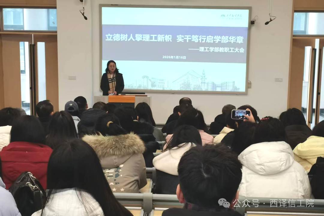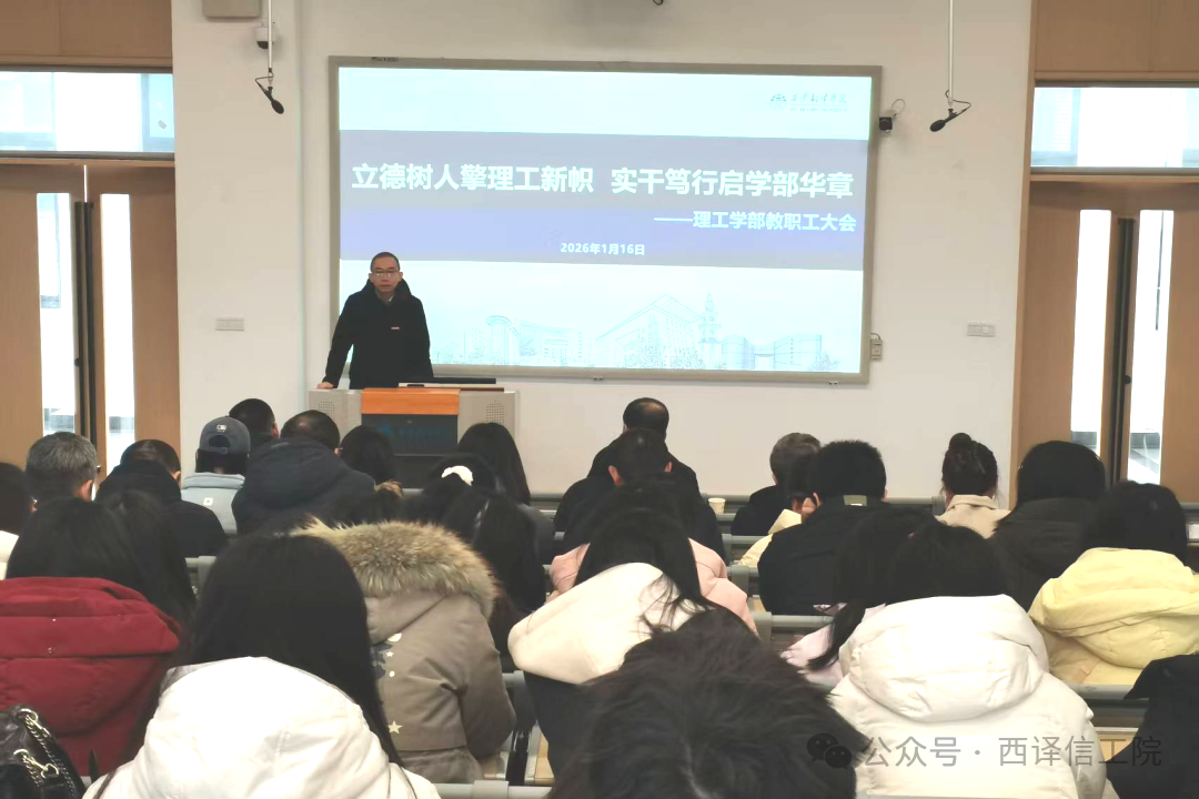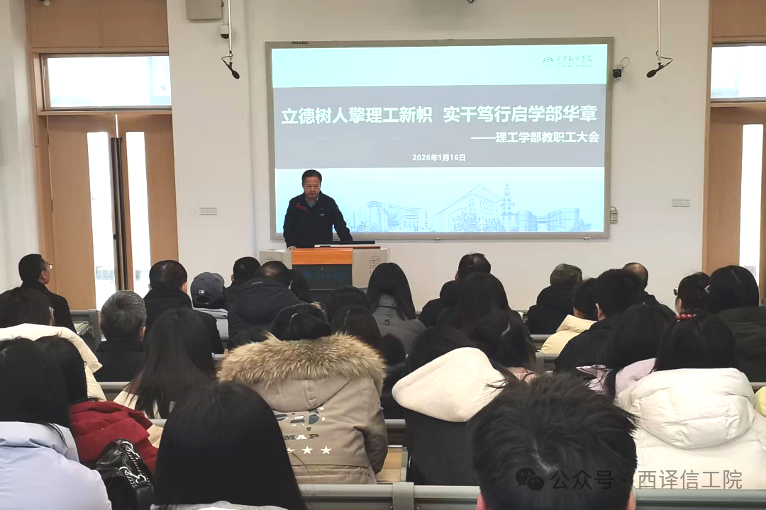 春潮涌动启新程,奋楫扬帆谋发展。为锚定立德树人根本任务,夯实理工学部的发展根基,2026年1月16日上午9:00理工学部隆重召开首次全体教职工大会。这是学部组建以来凝聚共识、擘画蓝图的关键会议,标志着理工学部在整合优势资源、迈向高质量发展的道路上迈出了坚实一步。学部部长樊相宇,副部长徐中、王艳丽、尤国强,各部门主任(副主任)及全体教师参会。会议由副部长徐中主持。