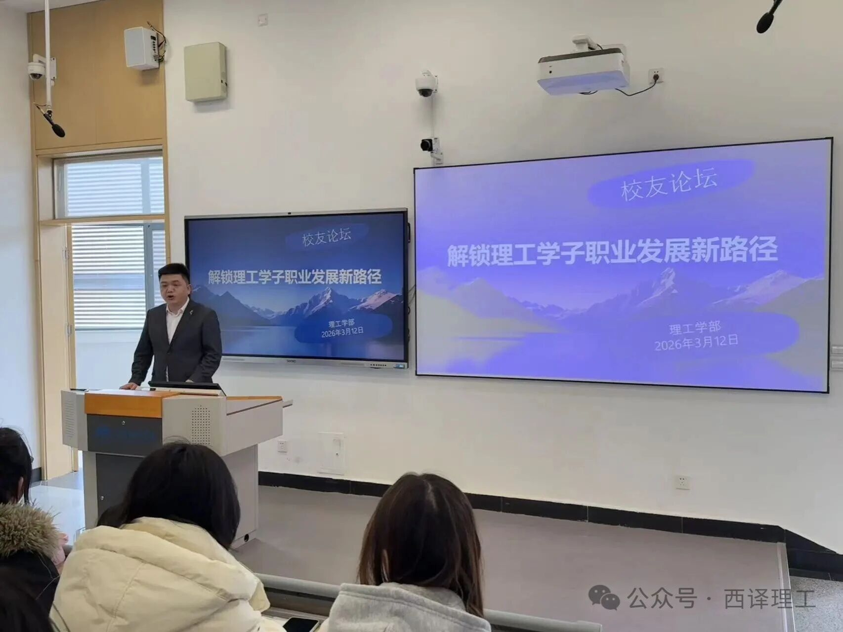 为进一步引导理工学子明确职业发展方向、破解就业困惑,搭建校友与在校学生的沟通交流平台,理工学部于2026年3月12日在733T召开校友经验分享,本次会议由学部综合办副主任王晓东主持,校友康鹏举担任主讲嘉宾。