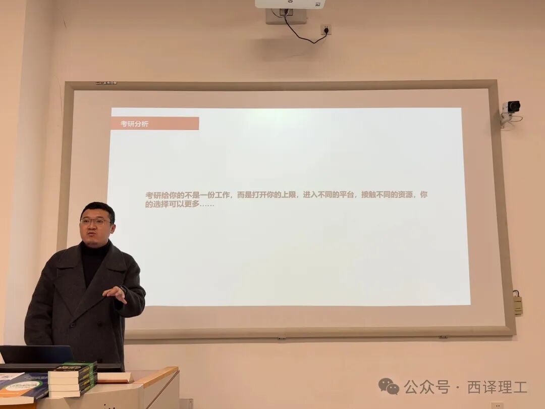 会议中,主讲老师围绕当前考研整体形势、报考政策变化及专业发展前景展开深度剖析。针对大家关注的院校选择、专业适配、备考策略等关键问题,结合详实的数据与典型案例进行深入浅出的解读,引导同学们理性分析自身优势与发展方向,规避报考误区,树立科学的备考目标,让考研规划更具针对性与可行性。